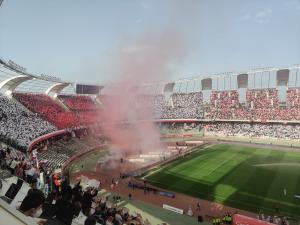 Giornata di festa per il Bari, che festeggia quest’oggi la promozione in B. All’inizio della gara contro il Palermo la coreografia della Curva Nord, tra bandiere, fumogeni colorati e cori. Di seguito le foto della festa.