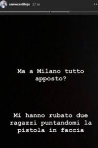 Brutta disavventura quella capitata a Samu Castillejo. Infatti, tramite una Instagram Story, l’attaccante spagnolo del Milan ha raccontato di essere stato rapinato a Milano e che, nel mentre, i due delinquenti gli hanno puntato una pistola in faccia: “Ma Milano è tutto a posto? Mi hanno derubato due ragazzi puntandomi una pistola in faccia.”