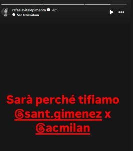 Rafaela Pimenta, agente di Santi Gimenez, si è lasciata andare a una storia Instagram che sa di chiusura allo scambio con Dovbyk dopo le difficoltà emerse. “Sarà perché tifiamo” ha scritto taggando il Milan e l’attaccante. Nessun accordo dunque tra Milan e Roma per lo scambio tra i due centravanti, che resteranno nei loro club di appartenenza.