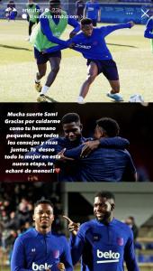 Per Samuel Umtiti è iniziata una nuova avventura al Lecce. Ansu Fati, suo compagno al Barcellona, ha voluto salutare il difensore francese attraverso una storia su Instagram: “Buona fortuna Sam! Grazie per esserti preso cura di me come il tuo fratellino, per tutti i consigli e le risate insieme. Ti auguro tutto il meglio in questa nuova fase, mi mancherai!!”.