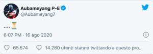Aubameyang, tweet criptico: indizio social sul rinnovo