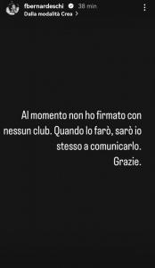 Dopo un periodo di silenzio e il mancato rinnovo con la Juventus, Federico Bernardeschi è tornato a parlare del suo futuro. “Al momento non ho firmato con nessun club. Quando lo farò, sarò io stesso a comunicarlo. Grazie”. Queste le sue parole su Instagram.