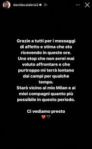 Calabria dopo l’infortunio: “Starò fuori un po’, ma sarò comunque vicino al mio Milan”