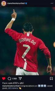 Cristiano Ronaldo non finisce mai di sorprendere e, nonostante i 39 anni sulla carta d’identità, continua a macinare record su record. Ieri con il suo Portogallo, nella sfida di Nations League contro la Croazia, ha vissuto una serata magica: al 34° ha messo a referto la sua rete numero 900 in carriera, numeri da paura. Il 900° gol segnato in carriera lo rende il primo a raggiungere questa soglia in gare ufficiali. Molti i club che si sono complimentati con lui. Oggi è arrivato anche il post del Manchester United, squadra in cui forse Ronaldo è diventato il CR7 che ora tutto il mondo conosce. Ecco i complimenti del club inglese: “Congratulazioni per i 900 gol in carriera Cristiano”.