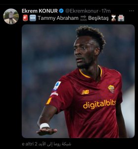 Tammy Abraham sta per lasciare la Roma, destinazione Besiktas. Come svelato dal giornalista Ekrem Konur (lo stesso che aveva dato la notizia del forte interesse 6 giorni) il trasferimento dell’attaccante è sul punto di essere completato. Operazione da circa 20 milioni.