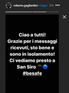 “Ciao a tutti! Grazie per i messaggi ricevuti, sto bene e sono in isolamento! Ci vediamo presto a San Siro”.