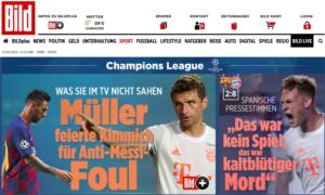 Bild festeggia sulla home page del sito web con “Muller festeggia Kimmich come l’anti Messi”. Kicker invece apre con “Il Barcellona è stato messo all’angolo”.