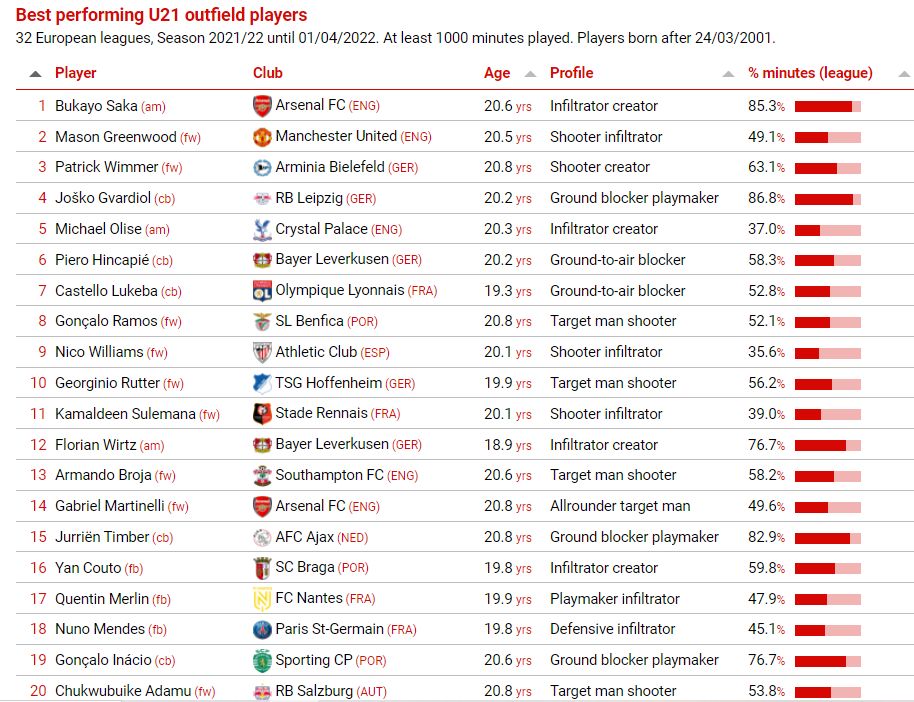 Il CIES Football Observatory, organizzazione quotidianamente attiva nell’analisi del rendimento di club e calciatori, ha fornito un interessante report riguardante i Best performing youngsters – indicando come fascia i calciatori nati dopo il 2001 con almeno 1000 minuti giocati nel rispettivo campionato in corso -, ovvero i giovani che performano meglio (in relazione ai rendimenti dei compagni di squadra e degli avversari). La classifica è stata costruita in base a dei parametri raccolti da InStat, partner del CIES, che hanno reso possibile fornire un risultato – ma non è una novità – spiacevole per il calcio italiano. Nella Top-20 non figura nessun italiano né calciatore attualmente militante in Serie A. Il primo tesserato per un club della nostra massima divisione è Mattia Viti, difensore dell’Empoli, presente al ventiseiesimo posto. Guida il talentuoso gruppone Bukayo Saka dell’Arsenal.