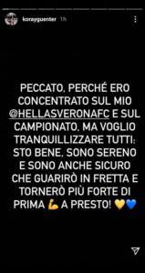 Gunter: “Grazie a tutti, sto bene. Tornerò più forte di prima”
