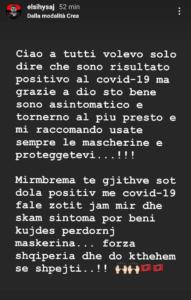 Il difensore del Napoli Elseid Hysaj, poco dopo aver riscontrato la sua positività al Covid-19, ha condiviso una Instagram Story per rassicurare sulle sue condizioni di salute: