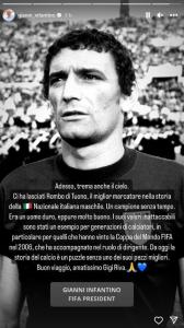 Bellissimo messaggio del presidente della FIFA, Gianni Infantino, che sul proprio profilo Instagram ha ricordato la leggenda Gigi Riva.