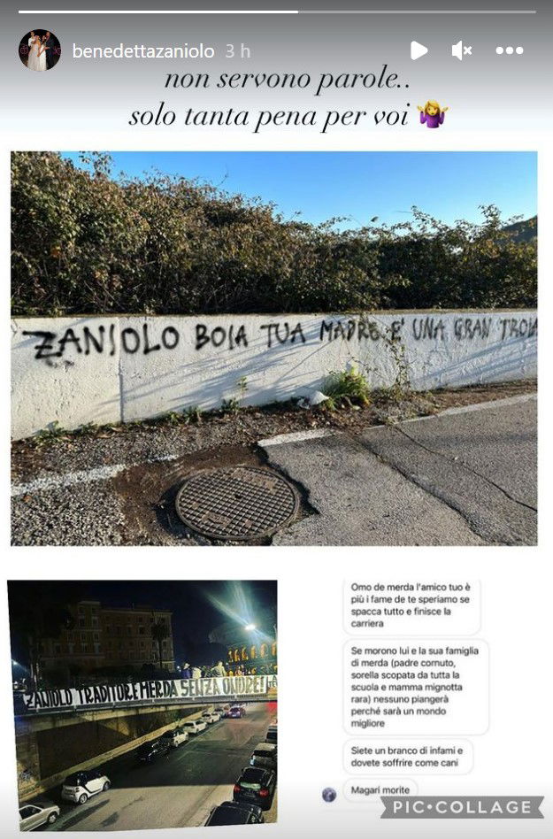 Nicolò Zaniolo aveva deciso di lasciare la Roma, ma l’addio non si è concretizzato e il giovane calciatore italiano si è ritrovato nell’occhio del ciclone: preso di mira con insulti e minacce. La sorella del ventitreenne, Benedetta Zaniolo, ha denunciato il tutto sui social pubblicando alcune foto e accompagnandole con un breve ma significativo messaggio: “Non servono parole…Solo tanta pena per voi”.