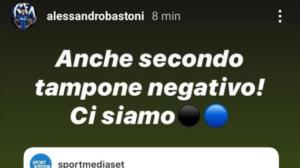 Buone notizie in casa Inter. Il difensore centrale Alessandro Bastoni non è più positivo al Covid-19. Ad annunciarlo è stato lo stesso giocatore sul proprio profilo Instagram: “Anche il secondo tampone è negativo. Ci siamo!”.