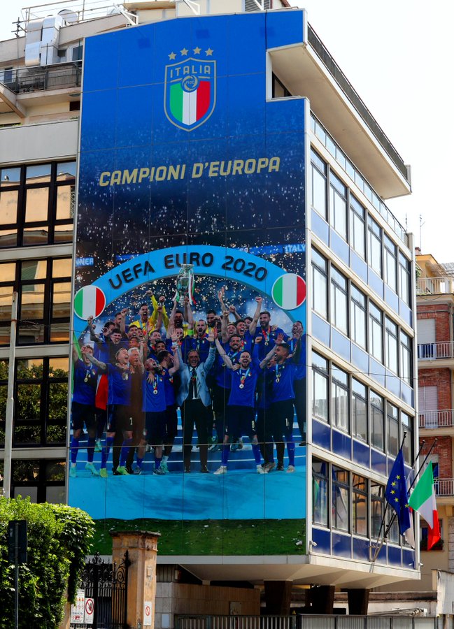 Dopo il trionfo Azzurro a Euro 2020, è stato realizzato un restyling delle due facciate dello storico palazzo di via Gregorio Allegri a Roma. Ecco il risultato.
