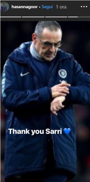 Maurizio Sarri sarà il nuovo allenatore della Juve, come vi raccontiamo da tempi non sospetti. Intanto, da Londra arrivano ulteriori conferme sull’addio del tecnico al Chelsea. Hasan Nagoor, azionista di minoranza del club inglese seguito sui social da centinaia di migliaia di utenti, in serata ha pubblicato su Instagram una storia nella quale saluta Sarri, ringraziandolo per il lavoro svolto: “Thank you Sarri”, il breve messaggio con allegato un cuore blu.