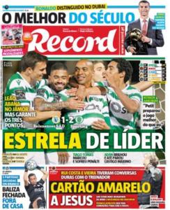 Anche Record regala lo spazio in prima pagina allo Sporting Lisbona, ma c’è posto ovviamente per Cristiano Ronaldo “Il migliore del secolo”.