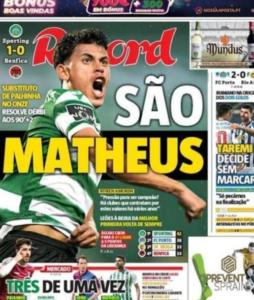 Aperture dei quotidiani portoghesi tutte incentrate sulla vittoria arrivata nella serata dello Sporting Lisbona contro il Benfica, che si mantiene saldamente al comando della Premeira Liga i padroni di casa. Ci pensa Matheus al 92′ a segnare il gol vittoria.
