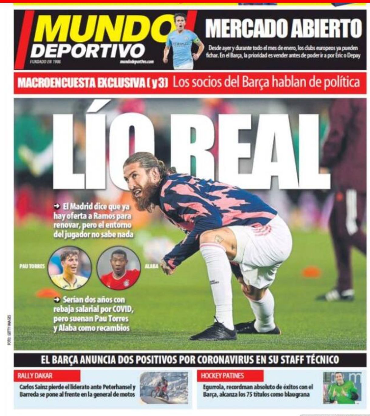Diverso invece il titolo di apertura di Mundo Deportivo, che tratta invece il caos intorno alla questione di rinnovo del capitano dei Blancos Sergio Ramos. La società sostiene di aver presentato già una offerta di rinnovo, ma le persone vicine al difensore spagnolo affermano di non saperne nulla.