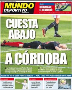 Anche Mundo Deportivo apre con la Supercoppa, ma con vista Real Sociedad. “In discesa verso Cordoba”: questa l’apertura dedicata alla Sociedad che ha recuperato Nacho Monreal, ma affronterà la Supercoppa in netto calo: il suo gioco è pieno di dubbi. La squadra di Imanol ha vinto una delle ultime nove partite ed ha perso 20 dei 27 punti