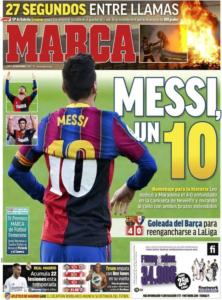 AS scrive “Nel nome del 10”, simile l’apertura di Marca: “Messi, un 10”.