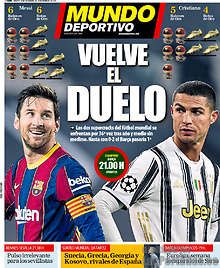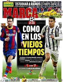 Copertine per la sfida di Champions di stasera tra Barcellona e Juve, e quindi tra Messi e Ronaldo, per i giornali sportivi spagnoli. Mundo Deportivo titola: “Torna il duello”. Scelta simile per Marca che sceglie due gigantografie dei due protagonisti e il titolo: “Come ai vecchi tempi”. Sport si concentra più sul Barça, reduce dal ko di Cadice: “Che torni la speranza”.