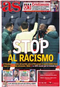 As dedica spazio all’episodio tra PSG e Basaksehir, “Stop al razzismo” recita lo spazio in prima pagina.