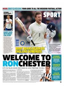 Mirror Sport titola così: “Il blue di Ronnie”, sulla stessa linea d’onda Metro Sport: “Benvenuti a Ronchester”. Infine Star Sport: “Guardate questo asso”.