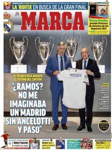 Marca: “Ancelotti: ‘Ramos? Non immaginavo un Real Madrid senza Ancelotti ed è successo’. Il tecnico lascia aperto il futuro del capitano. L’ex allenatore dell’Everton si è presentato: non esclude nessuno e chiede tempo per analizzare la rosa. Si sente “felice come la prima volta ma con meno dubbi”.