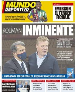 Mundo Deportivo: “Koeman imminente. Tutto indica che l’allenatore continuerà al Barcellona: il club può confermarlo oggi in consiglio direttivo. Negli ultimi giorni le posizioni si sono avvicinate, non c’è un’alternativa chiara e in caso di titoli vinti potrebbe restare più a lungo”.
