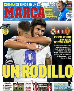 Successo netto quello di ieri del Real Madrid di Carlo Ancelotti che ha superato il Maiorca per 6-1: sugli scudi Asensio, autore di una tripletta. Gli altri gol sono stati realizzati da Isco e dalla doppietta di Benzema. Nella prima pagina odierna, il quotidiano spagnolo Marca ha celebrato i Blancos: “Un rullo”, il titolo scelto. Sulla stessa linea d’onda As che ha dedicato la sua apertura a un giocatore in particolare: “Asensio partecipa alla festa”.