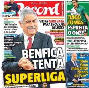 All’indomani della creazione della Super Lega, così titolano i maggiori quotidiani sportivi portoghesi nella rassegna odierna.