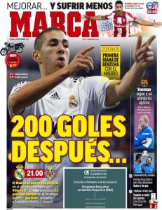 Marca, invece, su Benzema: “200 gol dopo…”. Poi sulla gara di stasera contro il Villarreal: “Ancelotti recupera Casemiro, Modric e Hazard“.