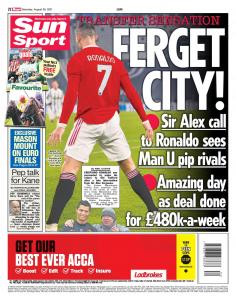 Le prime pagine inglesi sul ritorno allo United di CR7