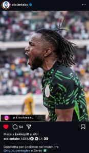 Lookman in gol con la Nigeria. L’Atalanta si complimenta con lui sui social