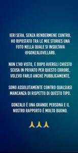 I festeggiamenti si sa spesso possono prendere pieghe sbagliate. Nei festeggiamenti social post derby, Luis Alberto non si è infatti reso conto di aver ricondiviso una storia Instagram che conteneva delle offese dirette al giocatore della Roma, Gonzalo Villar. Il fantasista biancoceleste, assoluto “man of the match” del derby vinto dai laziali, ha immediatamente chiesto scusa cancellando la foto e scrivendo un lungo post sempre tra le storie Instagram: “Ieri sera, senza rendermene conto, ho repostato tra le mie storie una foto nella quale si insultava Gonzalo Villar. Non l’ho visto, e dopo avergli chiesto scusa in ritardo per questo errore, volevo farlo anche pubblicamente. Sono assolutamente contro qualsiasi mancanza di rispetto di questo tipo. Gonzalo è una grande persona e il nostro rapporto è molto buono”.