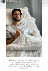 Il giocatore ha postato su Instagram una foto e ha scritto: “Grazie a tutti per i vostri messaggi e per esservi preoccupati. Sto già riposando e recuperando, presto mi rivedrete in campo lottando con i miei compagni”.
