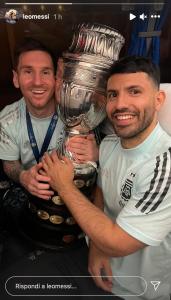 In posa con il portiere argentino Emi Martinez: “Congratulazioni bestia!!! Più che meritato!! Sei forte!”