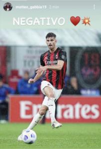 Matteo Gabbia è guarito dal Covid-19. Ad annunciarlo lo stesso difensore con un post su Instagram dove ha scritto: “Negativo”.