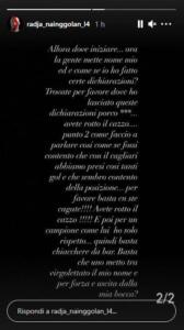 Queste le sue parole: “Allora da dove iniziare… ora la gente mette nome mio ed è come se io ho fatto certe dichiarazioni? Trovate per favore dove ho lasciato queste dichiarazioni porco***… avete rotto il caz… punto 2 come faccio a parlare come se fossi contento che con il Cagliari abbiamo preso così tanti gol e che sembro contento della posizione… per favore basta con ste cagate!!! Avete rotto il cazzo!!! E poi per un campione come lui ho solo rispetto… quindi basta chiacchiere da bar. Basta che uno mette virgolettato il mio nome e per forza è uscita dalla mia bocca?”.