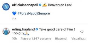 Al post di Instagram del Napoli, ha commentato Erling Haaland, connazionale di Ostigard (norvegesi entrambi). Il fuoriclasse del Manchester City ha scritto: “Prendetevi cura di lui. E’ un ragazzo top”.