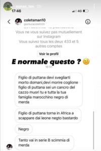 Gravi insulti razzisti per Adam Ounas, giocatore del Crotone, arrivato in Calabria nella recente finestra di mercato. Il franco-algerino ha pubblicato sotto forma di InstagramStories alcuni messaggi privati che gli sono arrivati nel pomeriggio. Gli viene ripetutamente augurata la morte e chiesto di “tornare in africa”. Ounas nel condividere gli insulti razzisti si domanda: “È normale questo?”.