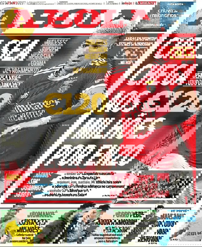 Le aperture dei quotidiani sportivi portoghesi dedicano ampio spazio ad Enzo Fernandez, centrocampista argentino del Benfica tanto chiacchierato in sede di calciomercato. Il ventiduenne, reduce da un ottimo Campionato Mondiale, è finito nel mirino del Chelsea che sarebbe disposto ad effettuare l’assalto finale (come scrive Record) affinché il club lusitano lasci andare il classe 2001 ex River Plate. Sono ore calde per il futuro del calciatore.