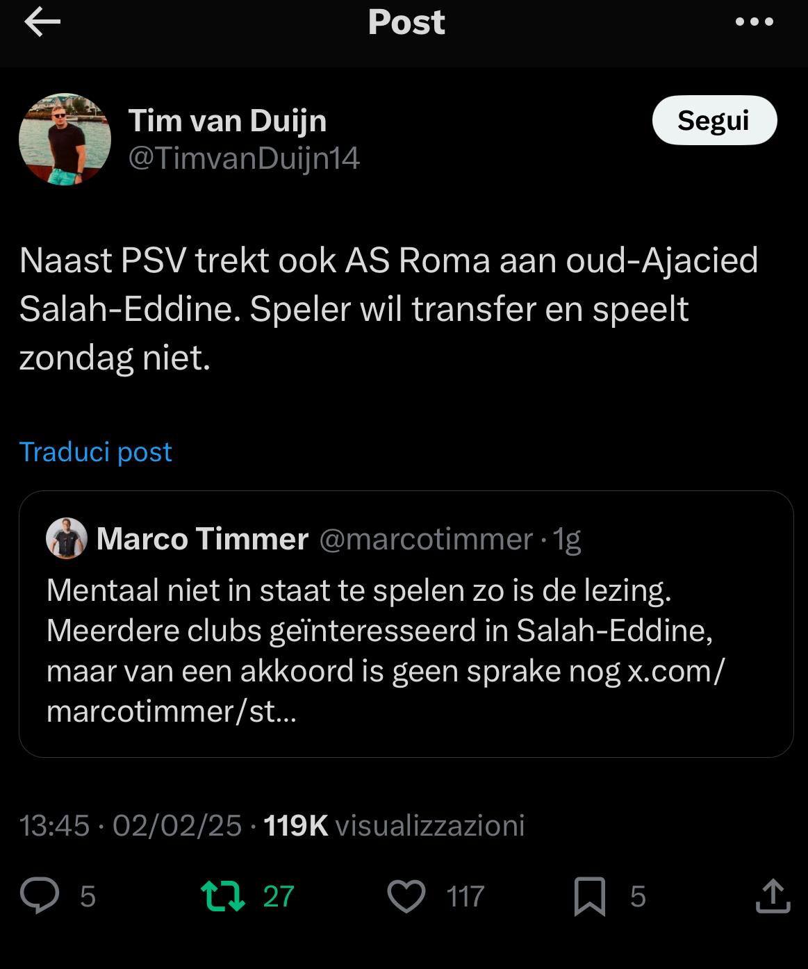 Come anticipato ieri dall’Olanda, la Roma è sul terzino sinistro Salah-Eddine.