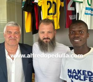 Sainey Sanyang è un nuovo calciatore del CSKA Sofia. Dopo la recente esperienza al Mondiale U20 con la maglia del Gambia, il terzino sinistro lascia gli Hawks per iniziare una nuova avventura in Bulgaria. Nella foto ecco Sanyang in compagnia dell’avvocato Luigi Sorrentino che ha curato l’operazione. La foto sottostante, invece, raffigura Sanyang (a destra) con il proprietario del CSKA Sofia Danail Ganchev (nel mezzo) e l’avvocato Sorrentino (a sinistra).