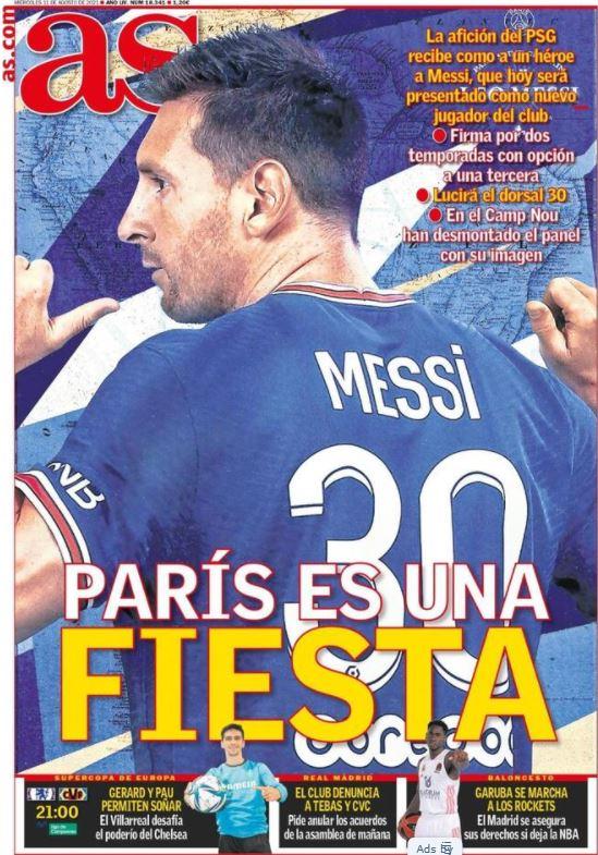 Anche dalla Spagna grande attenzione all’ufficialità di Leo Messi al Paris Saint-Germain. L’attaccante argentino ha firmato un biennale con opzione per il terzo anno, archiviando così definitivamente il suo passato iberico. Ecco le aperture dei principali quotidiani.