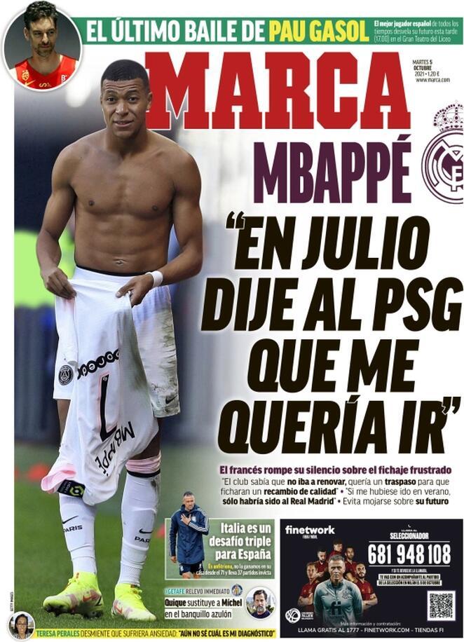 Alla viglia della semifinale di Nations League tra Italia e Spagna, i quotidiani iberici dedicano ampio spazio a Luis Enrique e alla squadra Azzurra. Inoltre, il protagonista delle prime pagine è Kylian Mbappé, il quale ieri è uscito allo scoperto rivelando che la sua volontà in estate era quella di lasciare il Paris Saint-Germain. Fari accesi sulla situazione in casa Barcellona. Di seguito tutte le aperture.
