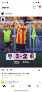 Dopo le parole a fine gara, il presidente del Lecce, Saverio Sticchi Damiani, posta sui propri account social il risultato di Lecce-Milan. Per il numero uno dei salentini, il Lecce ha vinto 3-2. Il Lecce aveva segnato al 94′ la rete del clamoroso sopparso ai rossoneri.
