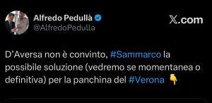 La nota: “Hellas Verona FC comunica che la guida tecnica della Prima squadra sarà affidata ad interim a mister Paolo Sammarco”, il comunicato ufficiale diramato pochi istanti fa dal club scaligero, a conferma dell’allenatore che lascia la Primavera per incaricarsi della prima squadra. “Il Club rivolge a mister Paolo Sammarco un caloroso in bocca al lupo e gli augura buon lavoro”.