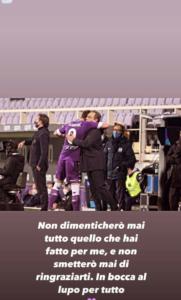 Arriva il primo saluto social da parte di uno dei giocatori della Fiorentina nei confronti di Cesare Prandelli che oggi si è dimesso dall’incarico di allenatore. Ed arrivano da Dusan Vlahovic, il giocatore che più di tutti ha beneficiato dell’apporto dell’ormai ex tecnico in viola. Queste le parole del serbo sul proprio profilo Instagram: “Non dimenticherò mai tutto quello che hai fatto per me, e non smetterò mai di ringraziarti. In bocca al lupo per tutto”.