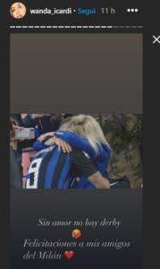 Il post di Wanda recita: “Non c’è derby senza amore. Complimenti ai miei amici del Milan”.